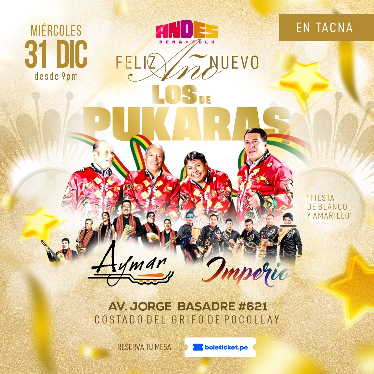 Inicio Tu boleto rápido, seguro y fácilVer eventosTe enseñamos a comprar en boleticketAprende aquí Descubre los mejores eventos Feliz año nuevo Miércoles 31 de diciembre Tacna Comprar Surandino en Tacna Viernes 27 de febrero Tacna Comprar Eventos anteriores